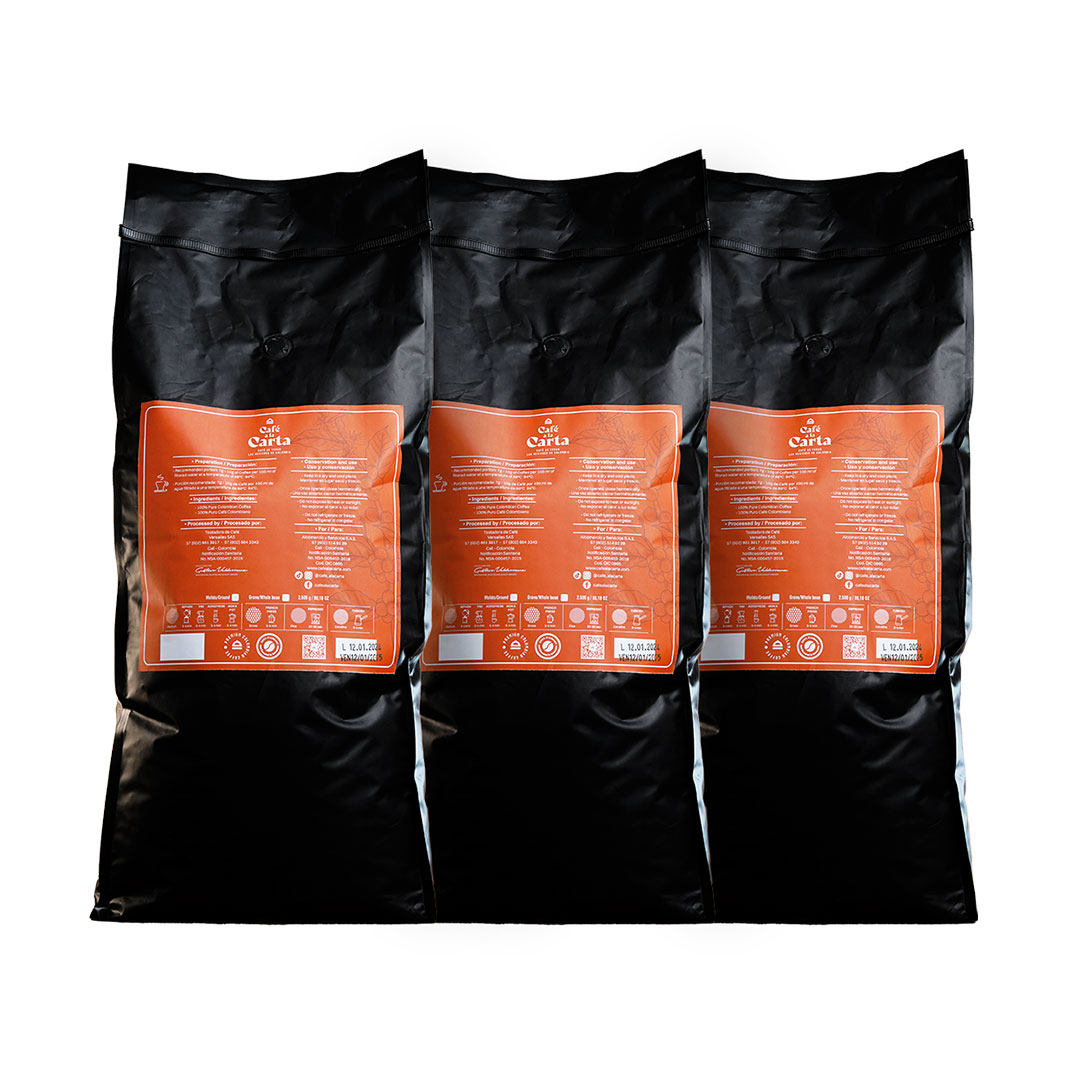 Escoge un combo Oro (2 Bolsas) o Platino (3 Bolsas) a tu gusto de una de nuestras categorías de café en grano o molido por gramaje deseado o drip bags coffee para tu uso personal, corporativo o como obsequio.
